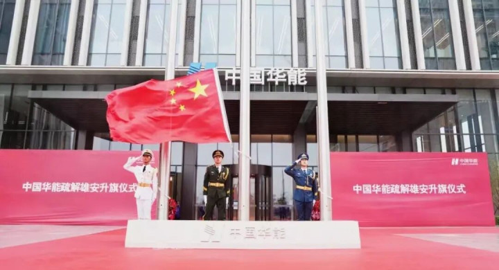 10月9日,中国华能集团有限公司举行了升旗仪式。雄安媒体中心供图