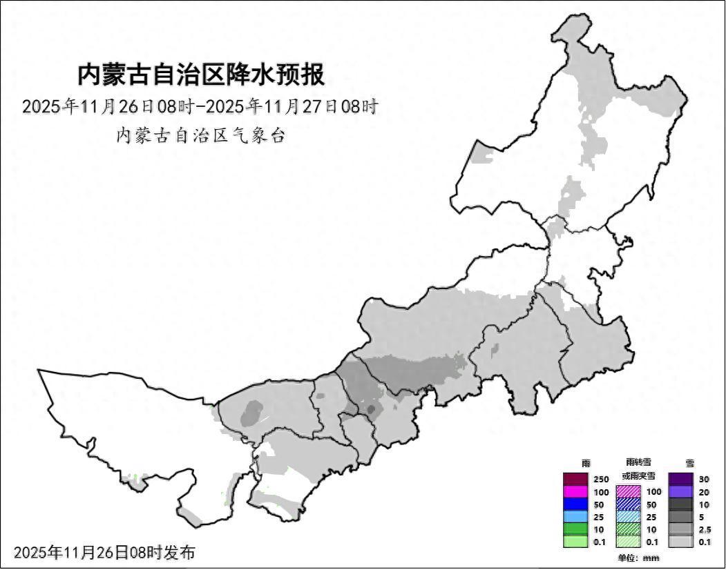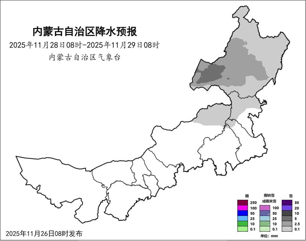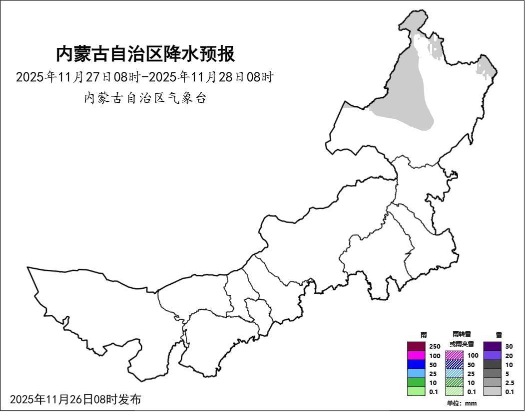 根据最新的气象资料分析,今起内蒙古多地将迎来雨雪降温天气过程,同时全区风力偏大,局地有沙尘暴,今天上午气象台接连发布大风黄色预警、沙尘暴黄色预警,提醒市民朋友外出注意防风保暖。随着天气日渐寒冷,各种病毒和细菌也“如约而至”,大家要做好当前季节高发传染病的预防。本周以来,内蒙古晴朗干燥格局不改,但气温下降明显网络配资开户,中部偏东、东部大部地区气温下降4~8℃网络配资开户,局地气温下降8℃以上。昨天,仅锡林郭勒盟、呼伦贝尔市等地出现小到中雪。晴好转瞬即逝,一轮大范围雨雪天气正火速赶来。预计今起,全区大部地区有小雪,巴彦淖尔市西部、包头市北部部分地区、呼和浩特市西北部、乌兰察布市北部、锡林郭勒盟西部、赤峰市西北部有中雪,局地有大雪,建议交通部门加强公路、铁路、机场和城市交通的疏导和应急管理,防范雨雪天气给交通运输带来的不利影响。同时,今起全区风力将明显增大,阿拉善盟至乌兰察布市西南部将受大风影响,平均风力可达8级以上,或者阵风9级以上,内蒙古自治区气象台上午09时10分发布大风黄色预警信号,请有关单位和人员做好防范准备。另外,预计今天阿拉善盟东部、巴彦淖尔市西部和南部、乌海市、鄂尔多斯市西北部将出现能见度小于1000米的沙尘暴天气,内蒙古自治区气象台09时30分发布沙尘暴黄色预警信号,提醒有关单位和人员做好防范准备。内蒙古自治区气象台2025年11月26日10时发布道路结冰黄色预警信号:12小时内巴彦淖尔市北部、包头市北部、呼和浩特市北部和南部、乌兰察布市中部和北部、锡林郭勒盟西部和南部、赤峰市西北部将出现对交通有影响的道路结冰。请有关单位和人员做好防范准备。风雪影响下,今天各地气温下降明显,大部地区气温下降6℃左右,局地气温下降8℃以上,中西部城市最高气温将集体跌破冰点。东部各主要城市的最低气温降至-10℃以下,而呼伦贝尔市夜间气温会降至-20℃以下。最新天气资讯如下:26日08时至27日08时,西部偏东和偏南、中部大部、东南部和东北部偏北地区多云,有小雪,其中,巴彦淖尔市西部、包头市北部部分地区、呼和浩特市西北部、乌兰察布市北部、锡林郭勒盟西部、赤峰市西北部有中雪,局地有大雪;西部、中部偏西地区有5、6级短时7、8级局地9、10级西北风,西部部分地区伴有沙尘天气;全区大部地区气温下降4到6℃,西部偏东、中部偏北、东南部偏西地区气温下降6到8℃,局地气温下降8℃以上。