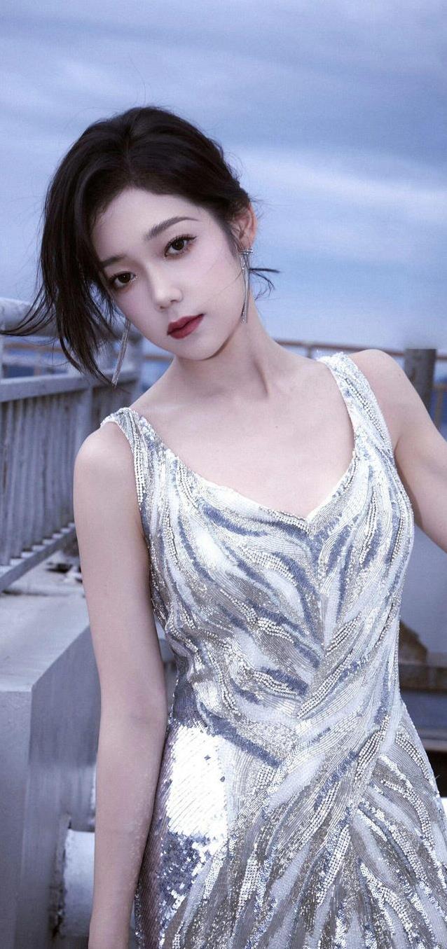 希林娜依高在照片中总能把清冷和明艳两种感觉融合得恰到好处。淡蓝色的纱裙画面里,上衣是挂脖款式,上面点缀着细碎的珠片,散发出柔和的光芒。裙摆蓬松轻盈,像缓缓流动的星河一样,长长的卷发随意垂下来,暖色的红唇与冷调的裙装相互映衬,带来一种飘然出尘又带着距离的美感。